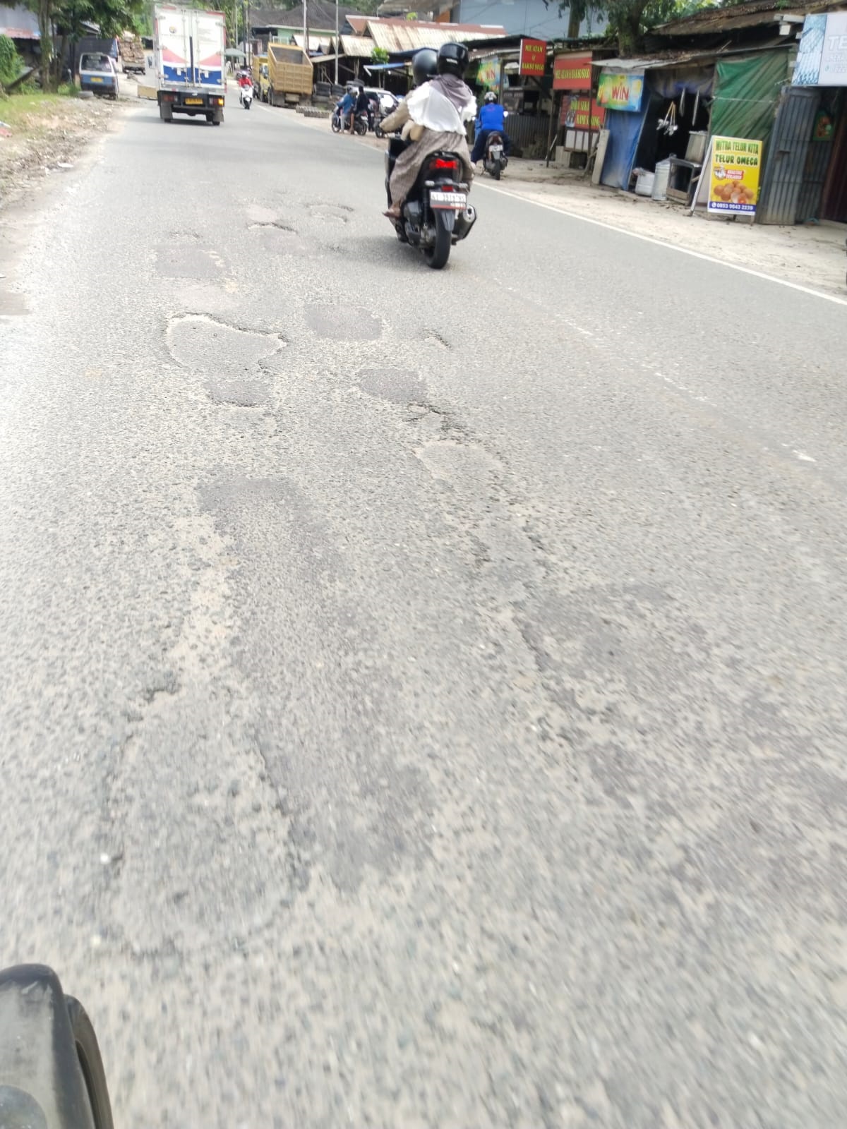 Sejumlah pengendara yang melintas mengungkapkan kekhawatirannya terkait kerusakan jalan yang cukup parah.