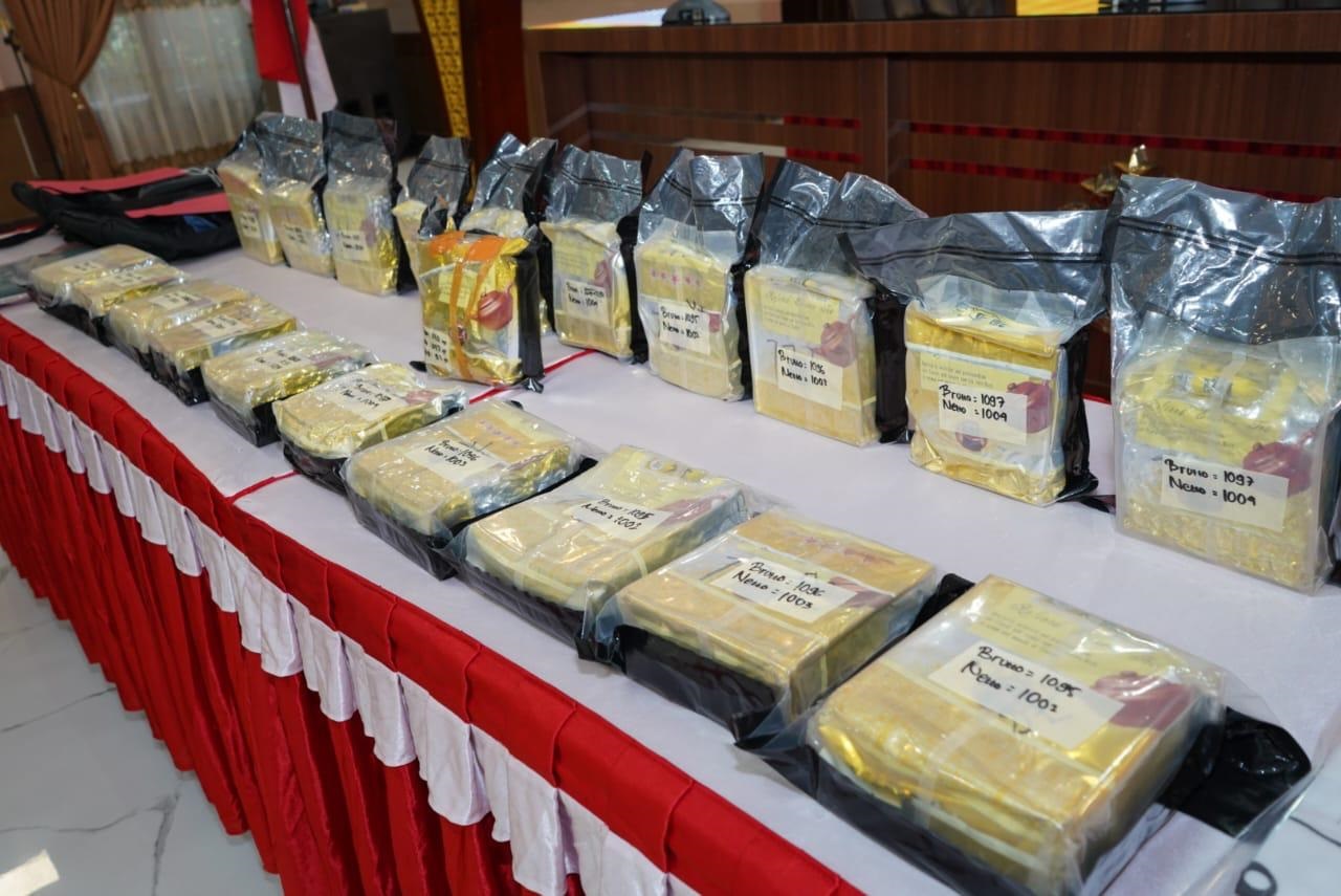 Adapun barang bukti yang berhasil disita oleh kepolisian, antara lain 21.909,99 gram (21 kg) sabu, 15.977 butir pil double L, dan 10 butir pil ekstasi.